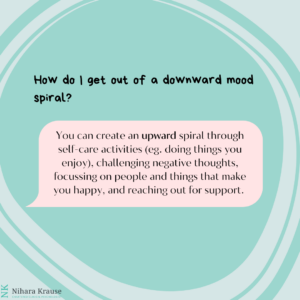 In mental health when people talk about spirals, they refer to their mood, which can often follow a downward spiral. This is usually a negative feedback loop. If we take social media, it can generate negative thoughts, emotions and even generate negative actions. These then feedback on themselves causing the person to feel even worse, prompting further social media use to try and make themselves feel better, which only leads to further negativity.